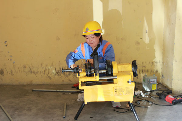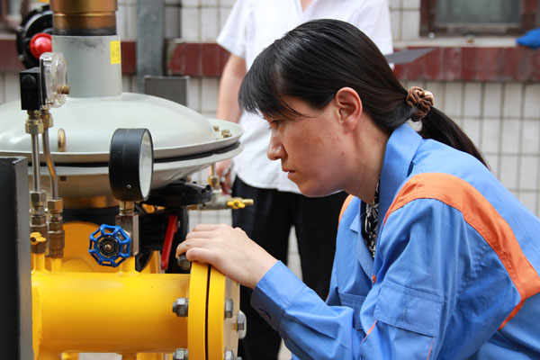 燃氣具安裝維修工比賽中,女選手技術(shù)毫不遜色