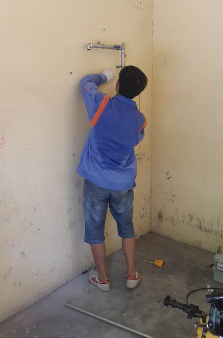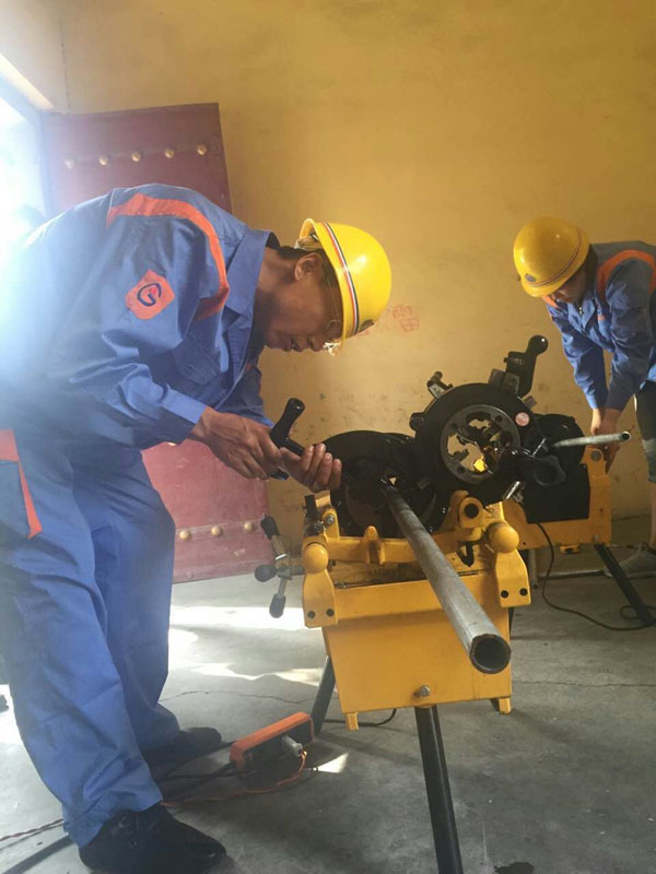 燃氣器具安裝比賽中,選手不畏酷暑,認真操作