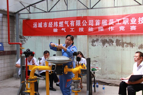 輸氣工比賽中,女選手技術(shù)也毫不遜色